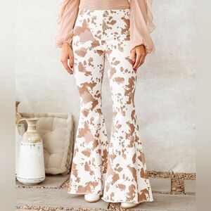 Your favorite high rise now with an exaggerated flare bottom opening and on-trend cow print. You don’t want to miss out on these bottoms because they won’t last long!