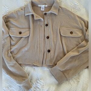 Altar'd State Cream Button-Up Ribbed Top