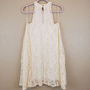 Altar'd State Cream Floral Lace High Neck Halter Tunic Swing Lined Mini Dress