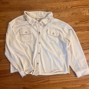 Chic cream utility jacket with front pockets. Perfect for layering. Adds style to any outfit. Size L. Excellent condition