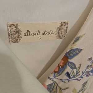 This elegant sundress by Altar'd State features a sleeveless design with a scoop neckline, perfect for a wedding guest occasion. The dress showcases a beautiful blend of cream and pink hues, crafted in a flowing maxi style that exudes effortless charm. Its light and airy fabric makes it ideal for resort wear, ensuring comfort and style in warm weather.
