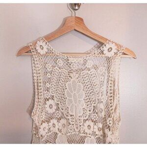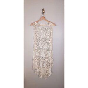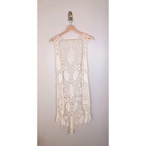 Altar'd State Crochet Floral Boho Hippie Cream Open Vest Women's Size XS