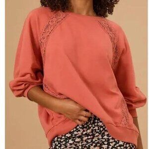 Altar’d State Crochet Sweatshirt in green . NWOT. Size XS . Stock photo for styling purposes only.