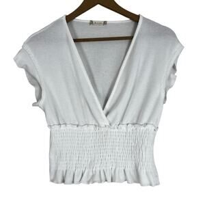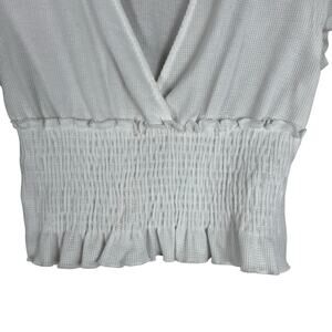 Altar’d State Crop Top Womens S White Waffle Knit Smocked Cap Sleeve Clean Girl