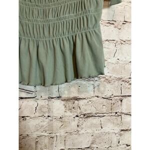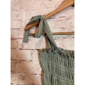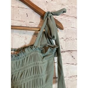 Altar'd State Crop Top Womens Small Sage Green Smocked Tie Sleeves Boho Coquette