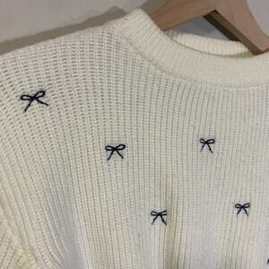 Altar'd State Cropped Cream Mini Bow Coquette Sweater Peasant Sleeve Sz M
