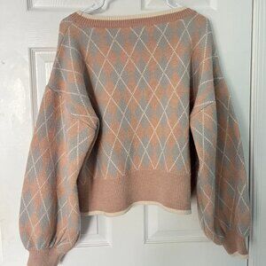Altar'd State cropped retro diamond print sweater in women's L-XL- very oversized and cozy. Lines up with the preppy and coquette aesthetic. No tags, but very lightly worn and in mint condition.