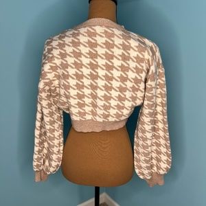 Altar'd State Cropped Long sleeved Houndstooth Brown and White Sweater Medium