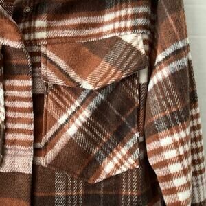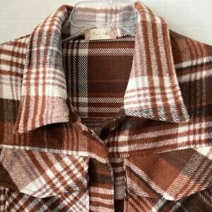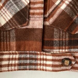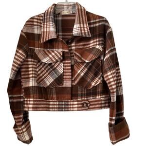 Altar'd State Cropped Plaid Jacket Womens Size M Brown White Heavy Flannel Cozy