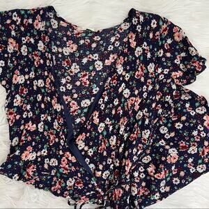 Altar'd State Dark Blue Floral Mini Wrap Dress Size Medium
