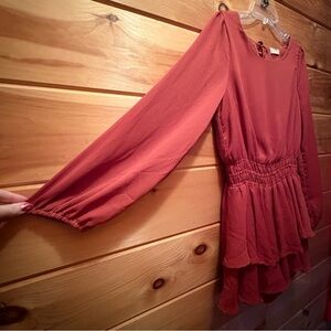 Altar'd State Deep Warm Terracotta Ruffled Long Sleeve A-Line Romper size L