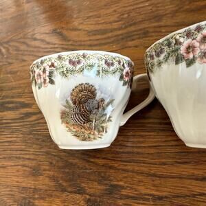 A Rare Find for your Fall Table! Three Churchill Thanksgiving Myott Factory Archive Illustration Flat Cups. Adapted from original copper engravings. These are a challenge to find and quite collectible. These are in excellent condition and ready for your Fall holidays!