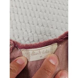 This beautiful dress from Altar'd State is perfect for any occasion. The ribbed velvety soft fabric in a lovely pink color will make you feel comfortable and stylish. The dress has a shift style with a knee-length hemline and balloon sleeves that add a touch of elegance. It is available in women's size medium and is suitable for regular size types. This dress is an excellent addition to any wardrobe and can be worn for a variety of occasions.