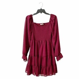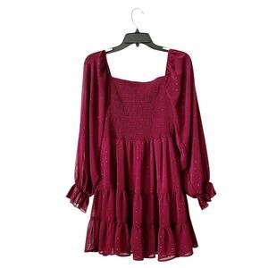 Altar'd State Dress Women's Size S Burgundy Smocked Long Sleeve Tiered Ruffle