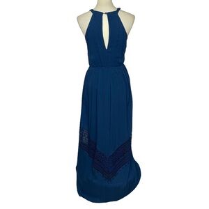 Altar’d State Dress Womens Small Blue Maxi Sleeveless 100% Rayon Lace Appliqué