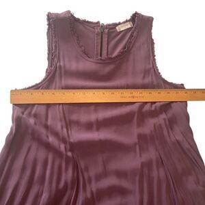 Altar'd State Eggplant Sleeveless Fringe Frayed Shift Dress Size Medium Sleeveless. Hem and sleeves are fringed. Material is 100% rayon. Machine washable. Measurements are in the pictures. Quick shipper, within a day. Smoke free home.