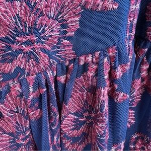 This beautiful women's dress features a stunning blue base with intricate pink patterns. Perfect for any occasion, it combines style and comfort effortlessly.