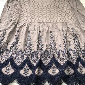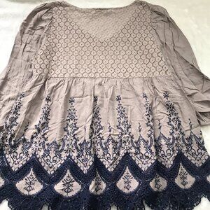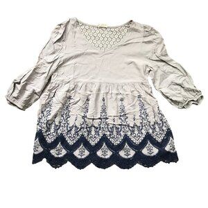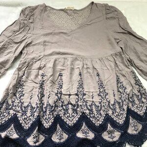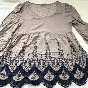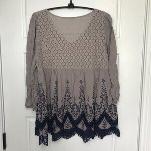 Altar'd State Embroidered Tunic Top Women's Medium 100% Rayon Lace Accents Blue