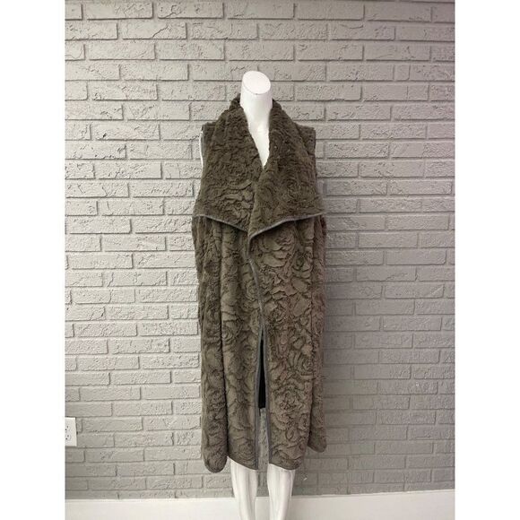 Altar’d State Faux Fur Longline Rose Pattern Vest Size L