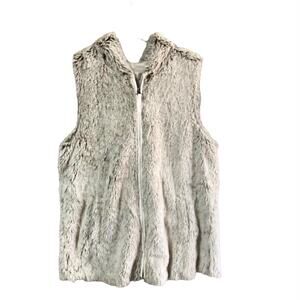 Altar'd State Faux Fur Teddy Hooded Vest Beige Cream Size Medium Zip Closure
