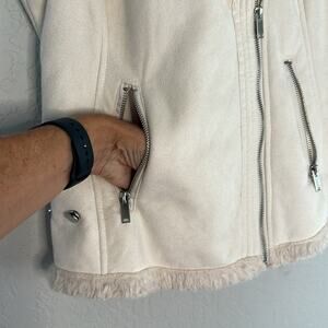 Altar’d State Faux Suede Fuzzy Vest Moto Cream Fall Preppy Zipper Soft Girl Cozy