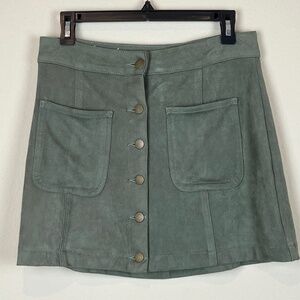 Altar’d State Faux Suede Olive Green Button Up Mini Skirt; Size S