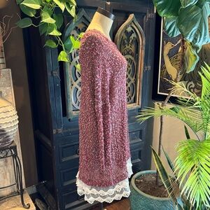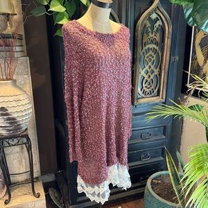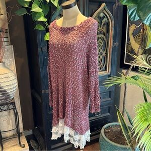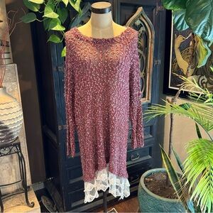 Altard State Final Chapter Sweater Dress Lace edging. Retro 90’s vibe. Semi-sheer very oversized. Tagging small/medium. Burgundy wine color