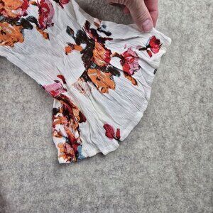 This stunning Altard State floral top combines elegance with casual grace. Crafted from 100% lightweight rayon, it features an intricate floral pattern in vibrant orange, pink, and blue hues atop a crisp white background. The gently gathered elastic neckline creates a flattering silhouette, while the flowy bell sleeves exude chic boho style. Perfect for transitional weather, this top boasts a midweight, breathable feel. With an easy fit and fabric that drapes beautifully, it's effortlessly versatile. Whether paired with denim or layered with a jacket, this medium-sized blouse brings both comfort and sophistication to any wardrobe.