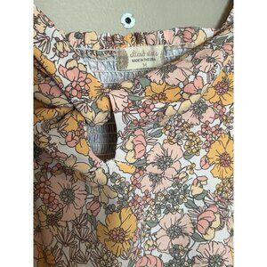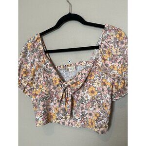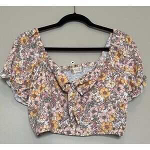 Altard State Floral Boho Peasant Crop Top Medium Orange Pink Tie Front Cottage