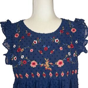 Altar’d State Floral Embroidered Navy Blue Blouse. Size Large. Great Condition!
