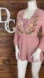 Embrace elegance with this dusty blush pink floral embroidered romper. Perfect for any occasion, it features intricate floral designs and a flattering fit. Elastic waistband. Deep Plunge V-Neckline Wrap Style. Ruffle Trim Hem. Bell Sleeves. Fully Lined. Multicolored colors include green, gold, yellow, cream, pink, red, burgundy.