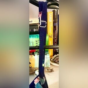 • Navy base with vibrant floral print (pinks, reds, whites)