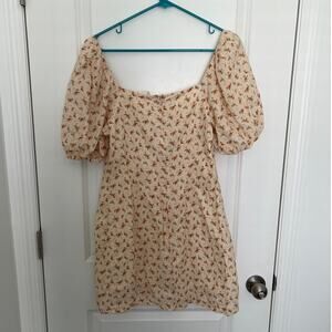 Altar'd State Floral Print Puffed Sleeve Mini Sundress Beige Women's Size Large