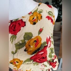 Altar’d State Floral Rose Sleeveless Top - Red, Yellow, Green Button Back Slit