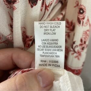 Cream floral, on or off the shoulder, smocking through the bodice, 3/4 bell sleeves, mini slip lining, feminine, boho, cottage core/granny core.