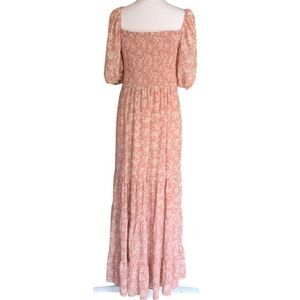 Altar’d State Floral Smocked Puffed Sleeve Square Neck Tiered Maxi Dress Sz S