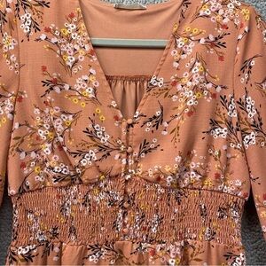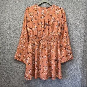 Altar'd State Floral Smocked Waist V Neck Bell Sleeve Mini Dress Sz S