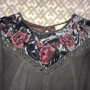 Altar'd State Floral Velvet Boho Sleeve Top Size S