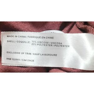 Slightly burn out material, brick reddish color. The pleats in front flow almost to thigh length on one side. Sleeveless, deep plunge. In excellent condition.