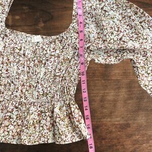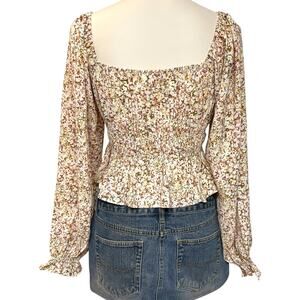 Fit/Features: Lightweight long sleeve blouse with a smocked waist and soft flowy fit in a romantic floral print. Tagged XS but fits closer to a Small/Medium. Perfect for spring or summer with high-waisted jeans or skirts.