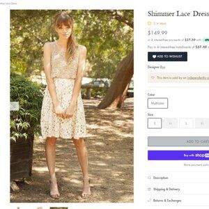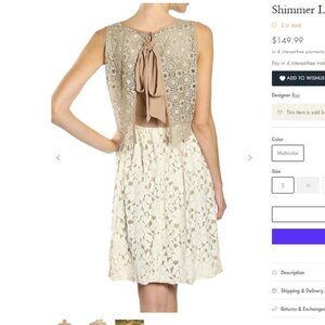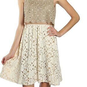 Altar'd State Gold Beige Floral Shimmer Lace Sleeveless Dress - Gold Shimmer Lace Bodice Overlay with a Cream Lace Skirt. Sleeveless Fully Lined, Open Tie Back.