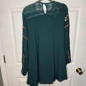 Altar'd State Green Embroidered Boho Mini Dress with Long Sleeves Size Small GUC