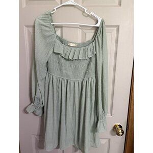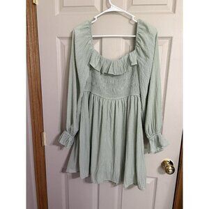 Altar’d State Green Long Sleeve Mini Dress Size Medium Ruffled Mini