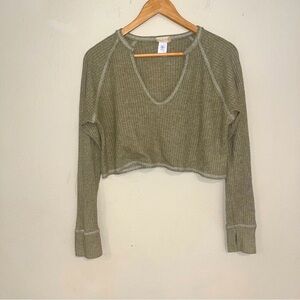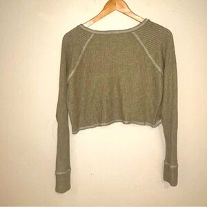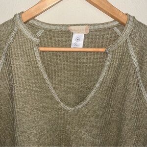 Altar'd State Green Waffle Outside Seamed Long Sleeve Shirt M Thumbholes
