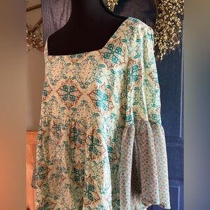 Altar'd State Green and Cream Sundress with Bell Sleeves size Small