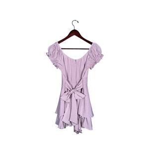 Altar’d State Haisley Double Layered Romper Women’s Medium Purple Ruffled Zips Ties Boho casual. PTP: 16”, waist: 13”. GUC.