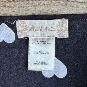Playful and flirty, this Altar’d State heart print mini skirt is perfect for date nights, brunch, or fun casual outings. Designed with an allover white heart print on black fabric, it features a ruffled hem, adjustable side tie detail, and a flattering mini length. Pair it with a tucked-in blouse or cozy sweater for a versatile look that transitions effortlessly from day to night.