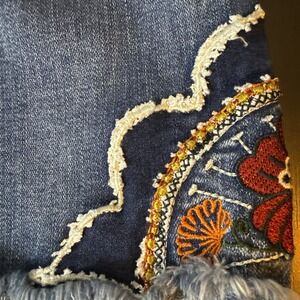 Altar'd State Jeans Womens 28 Caitlyn Low Rise Flare Raw Embroidered Hem Boho