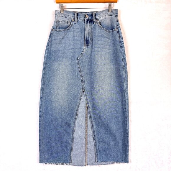 Altar’d State Jocelyn Front Slit Classic Midi Denim Skirt Womens S Light Wash