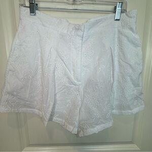 These trouser shorts are a blend of elegance and comfort featuring intricate eyelet details. These shorts boast a tailored fit, accentuating your silhouette while ensuring ease of movement with convenient pockets. * Fit: Relaxed * Closure: Zipper & Clasp